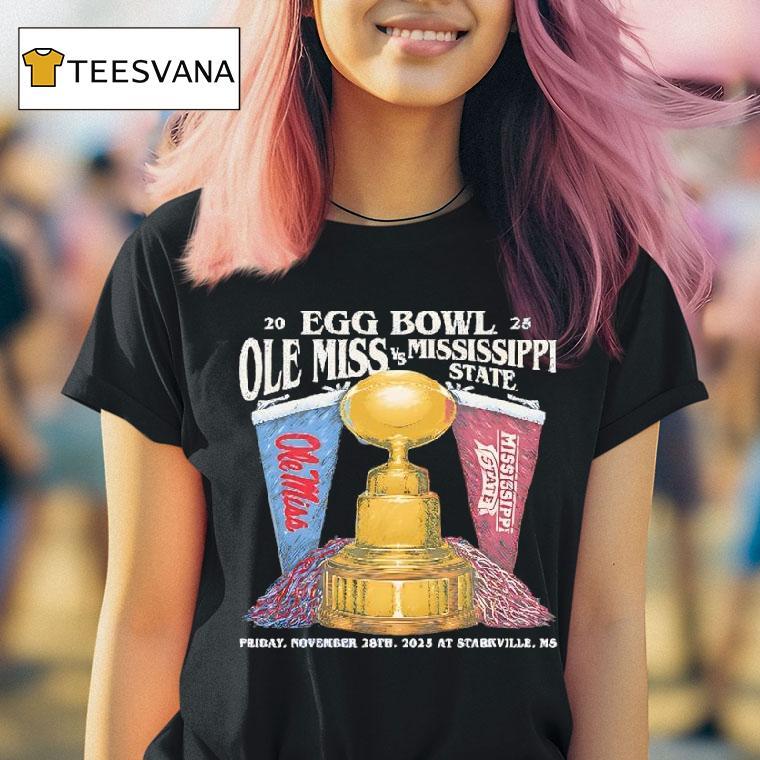 Effortless, everyday style with 2025 Egg Bowl Ole Miss And Mississippi State Friday November 28th 2025 Starkville Shirt, mark your calendars for November 28th, 2025 because the highly anticipated Egg Bowl between Ole Miss and Mississippi State will take place at Davis Wade Stadium in Starkville. Get ready to show your team spirit with the limited edition 2025 Egg Bowl Starkville shirt!