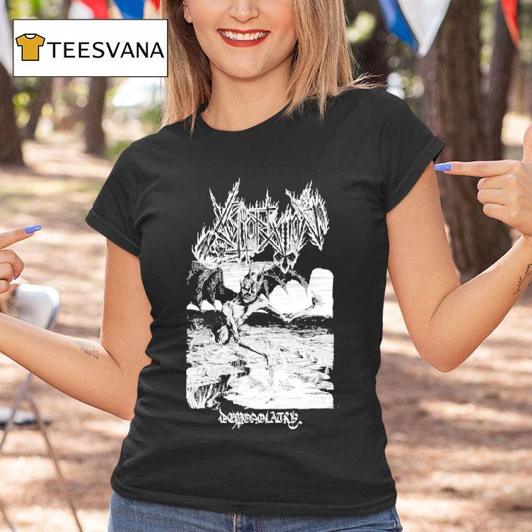 Fashion meets comfort with Abhorration Demonolatry Shirt, the Abhorration Demonolatry Shirt is the latest must-have for fans of dark and twisted fashion. This unique shirt features a haunting design of demon eyes and symbols, perfect for those who embrace their inner darkness. Get ready to summon some serious style with this bold and edgy garment.