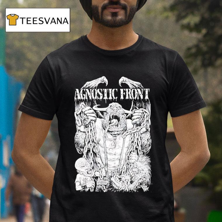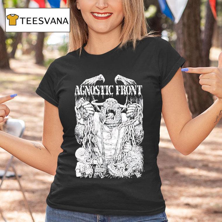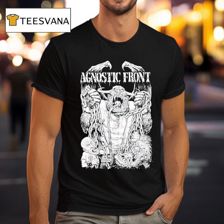 Sleek simplicity, ultimate comfort with Agnostic Front Sawblade Logo Graphic Shirt, showcase your hardcore style with the Agnostic Front Sawblade Logo Graphic Shirt. Featuring a bold sawblade design with the iconic band’s logo, this shirt is perfect for fans of the pioneering New York hardcore band. Rock out in true AF fashion with this edgy and unique shirt.