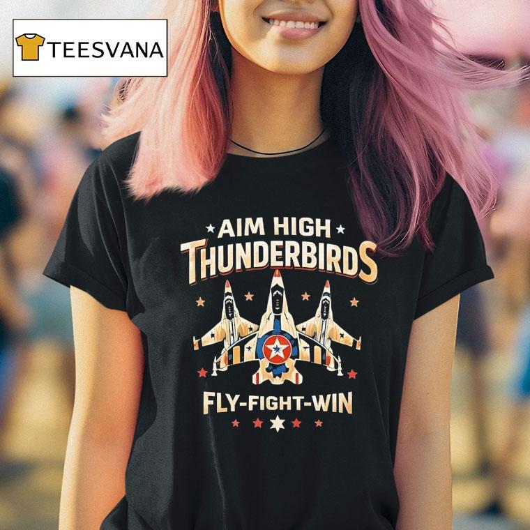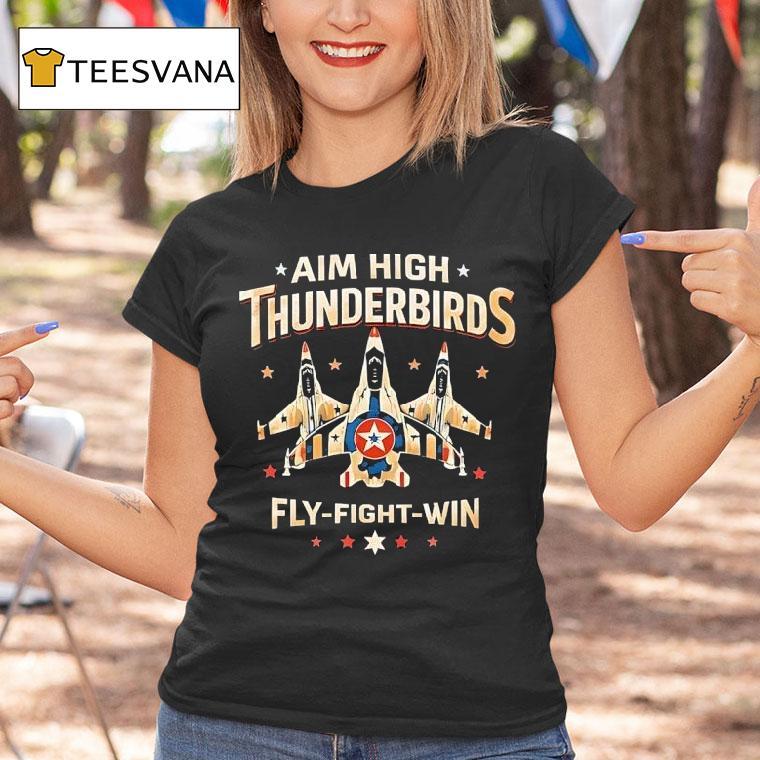 Simple style, maximum impact with Aim High Thunderbirds Fly-fight-win Shirt, looking to soar to new heights in your wardrobe? Look no further than the Aim High Thunderbirds Fly-fight-win Shirt. With its bold design and patriotic message, this shirt is perfect for showing off your own ambition and determination. Get ready to fly, fight, and win in style.