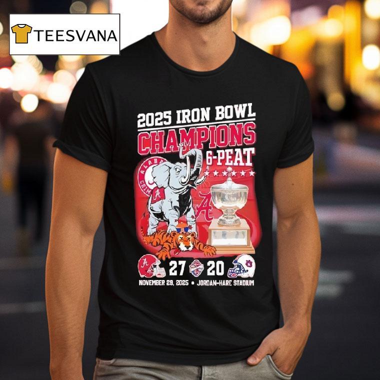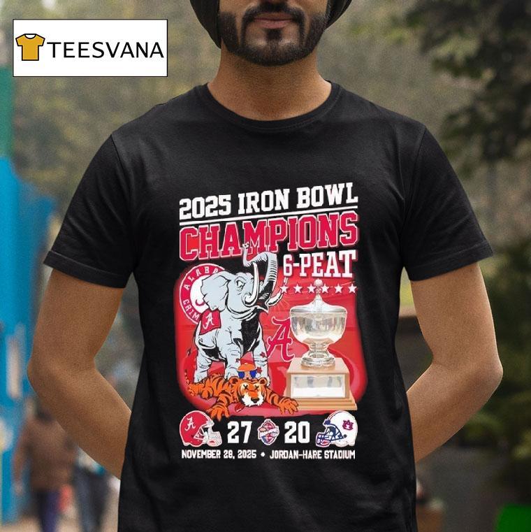 Wardrobe staple, endless style with Alabama Crimson Tide Iron Bowl 6 Peat 2025 Beat Auburn Shirt, get ready, Alabama Crimson Tide fans, because the Iron Bowl 6 Peat is coming in 2025! And what better way to celebrate than with the all-new Beat Auburn Shirt? Show your loyalty to the Tide and commemorate their dominance over their rivals with this must-have shirt. Roll Tide!