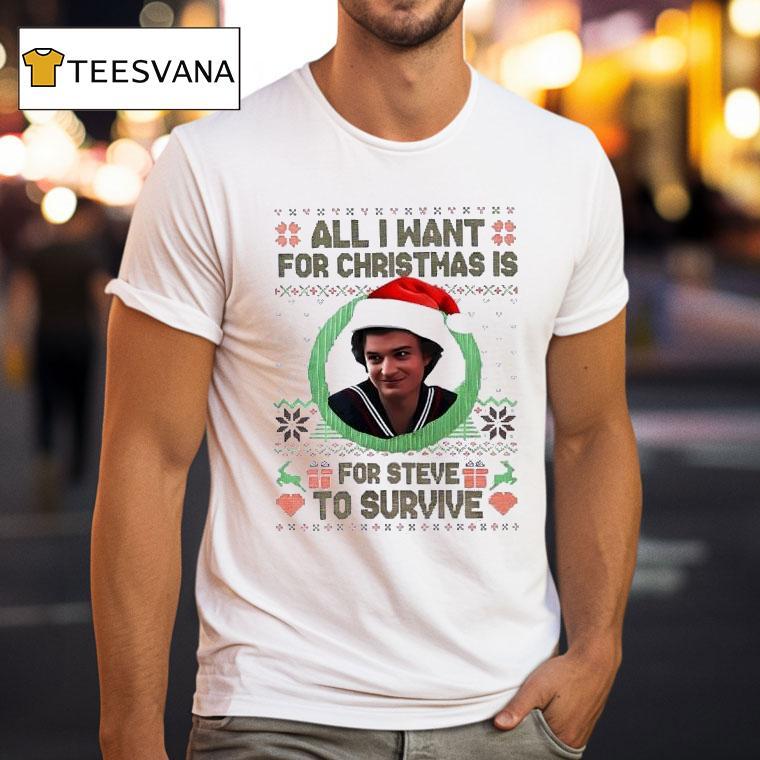 Casual flair, all occasions with All I Want For Christmas Is Steve Harrington To Survive Stranger Things Movie Shirt, as the holiday season approaches, it’s hard not to dream of the perfect gift. But for fans of Stranger Things, all they want for Christmas is for Steve Harrington to survive the upcoming movie – and what better way to show love for the character than with a unique shirt?