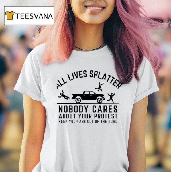 Effortless fashion flair with All Lives Splatter Nobody Cares About Your Protest About Your Protest Keep Your Ass Out Of The Road Shirt, as the saying goes, “All lives splatter nobody cares about your protest.” This powerful message is boldly displayed on the “Keep Your Ass Out Of The Road” shirt, serving as a reminder to protesters to stay safe and make their voices heard in a peaceful and respectful manner.
