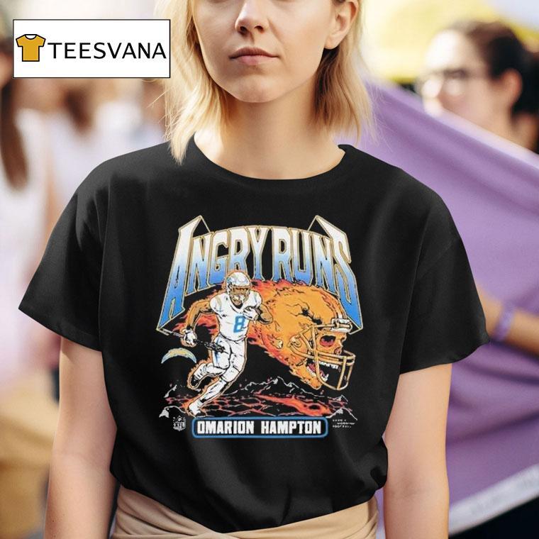 Chic and comfortable with Angry Runs Los Angeles Chargers Omarion Hampton Good Morning Football Helmet Flames Shirt, get ready to charge up your morning with some fiery NFL action! Los Angeles Chargers star, Omarion Hampton, has been turning heads with his explosive and angry runs. And now, you can show your support with the Good Morning Football Helmet Flames shirt. Let’s go Bolts!