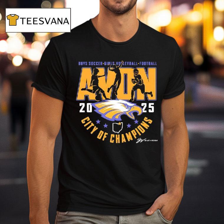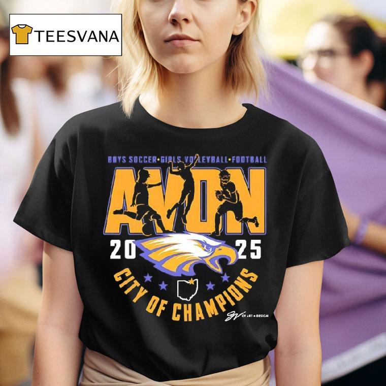 Everyday ease, endless style with Avon Eagles Boys Soccer Girls Voleyball Football City Of Champions Shirt, get ready to show your love for the Avon Eagles with the ultimate City of Champions shirt! Featuring the iconic boys soccer, girls volleyball, and football teams, this shirt is a must-have for any fan. Show your hometown pride and be part of the winning spirit!