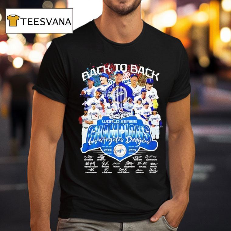 Simple sophistication with Back To Back World Series Champions Los Angeles Dodgers 2024 And 2025 Signatures Shirt, step up to the plate and celebrate the dynamic duo of the Los Angeles Dodgers with our limited edition Back To Back World Series Champions 2024 and 2025 Signatures Shirt. Show your support for the unstoppable team of the future and wear their winning legacy with pride.