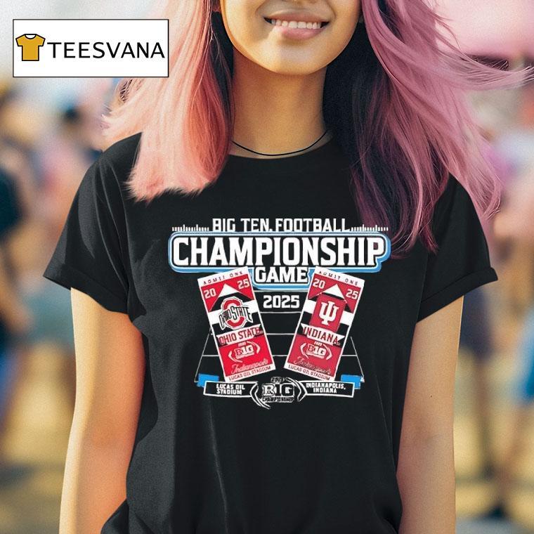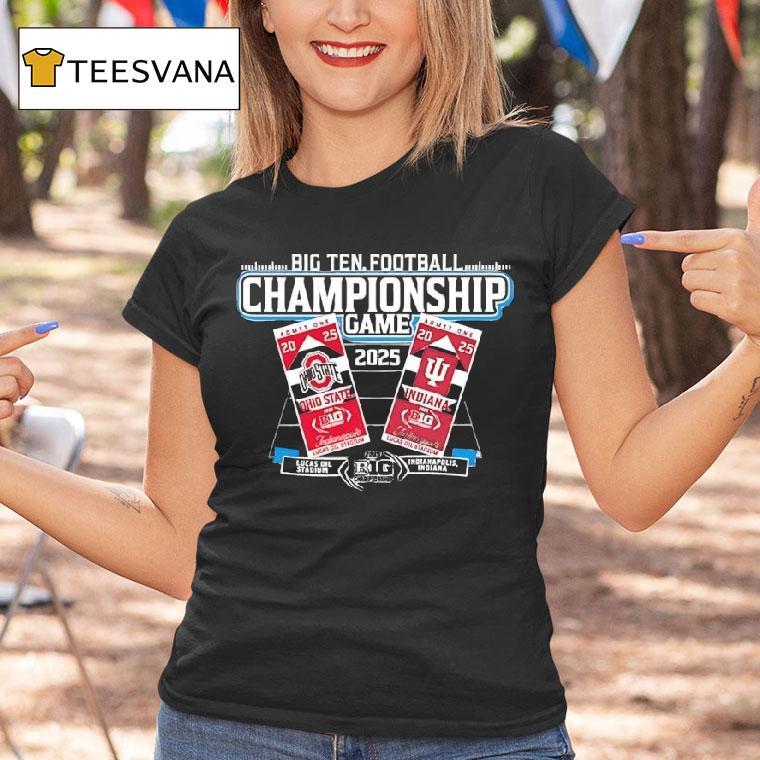Comfortable confidence with Big Ten 2025 Football Championship Stadium Ohio State Vs Indiana Hoosiers Logo Shirt, “Get ready football fans! The highly anticipated Big Ten 2025 Football Championship is set to take place at the magnificent Ohio Stadium, where the Ohio State Buckeyes will face off against the Indiana Hoosiers. Show your team pride with the official logo shirt and witness history in the making!”