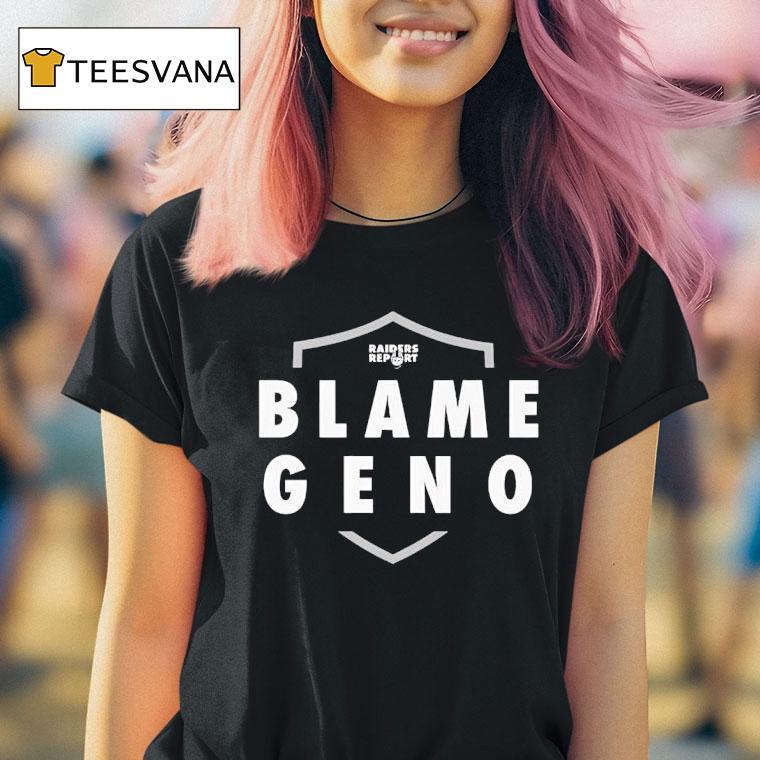 Versatile fashion, timeless appeal with Blame Geno Style Las Vegas Raiders Logo Shirt, welcome to the world of the Las Vegas Raiders, where the infamous Blame Geno style has taken over the iconic team logo. This edgy and bold design has garnered attention and controversy, but one thing is for sure: it’s a statement piece for any true Raiders fan.