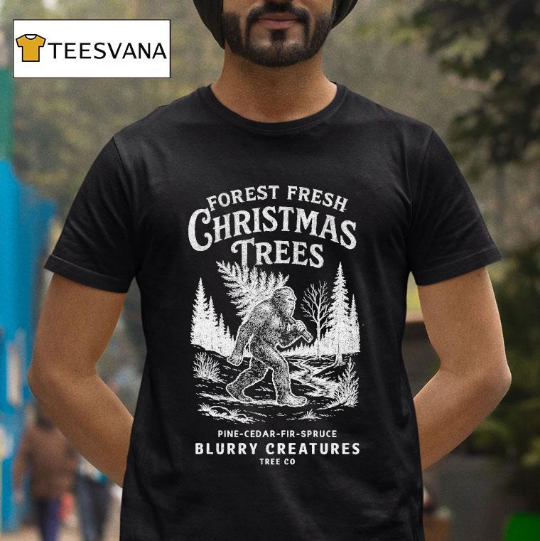 Chic comfort, all day with Blurry Creatures Forest Fresh Christmas Trees Pine Cedar Fir Spruce Bigfoot Shirt, amidst the bustling holiday season, there lies a hidden haven in the Blurry Creatures Forest. As the scent of fresh pine, cedar, fir, and spruce fills the air, inhabitants don their festive Bigfoot shirts while selecting the perfect Christmas tree. Join in on the enchanted tradition of this mystical woodland.