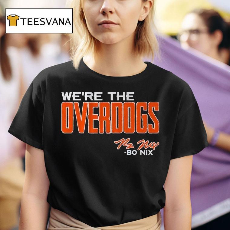 Effortlessly cool with Bo Nix We’re The Overdogs Shirt, get ready to show your team spirit in the ultimate comfortable and stylish way with the new Bo Nix We’re The Overdogs Shirt. This must-have shirt is perfect for any fan of the talented quarterback. Join the winning team and stand out in the crowd with this statement shirt.