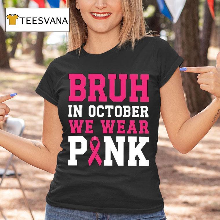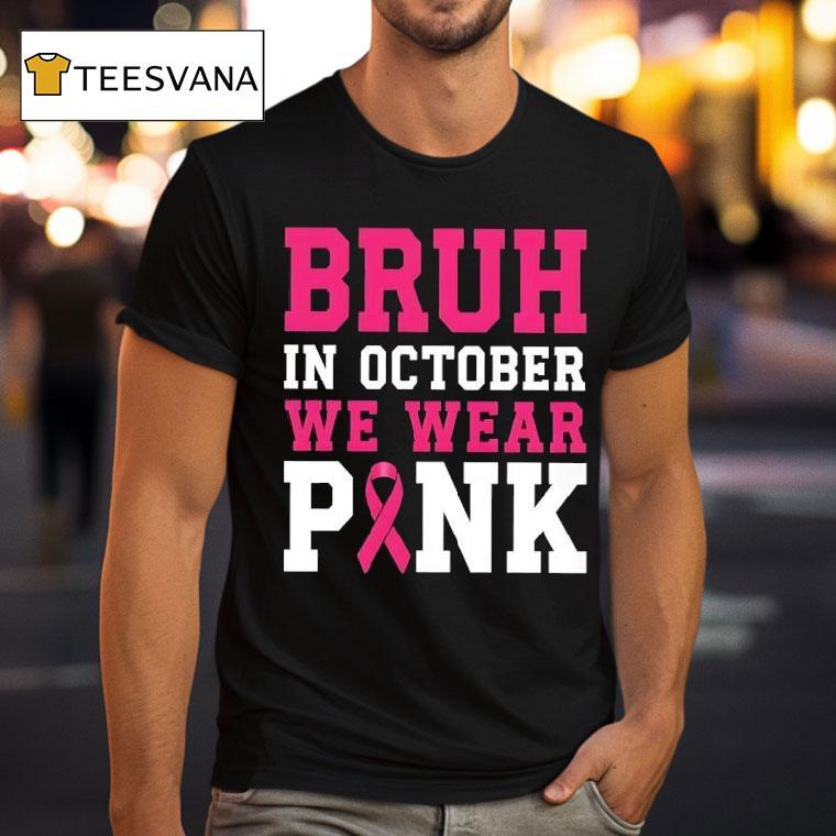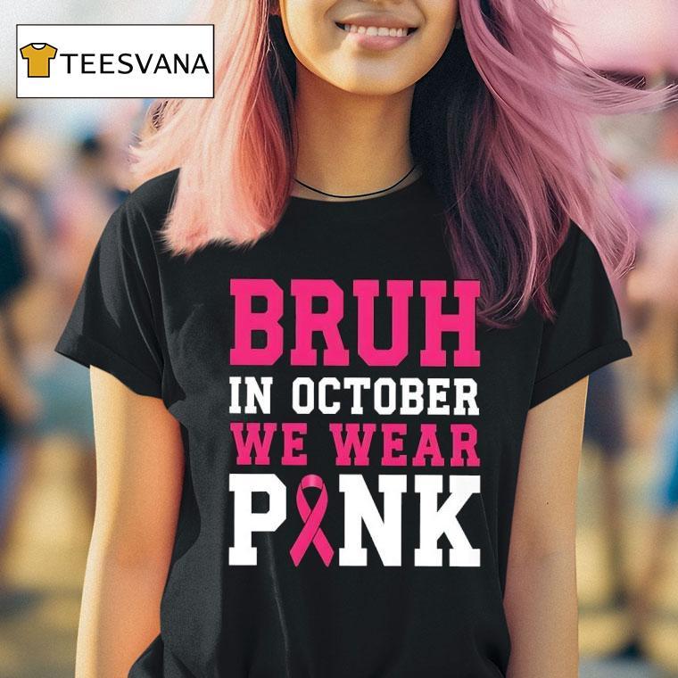 Comfort meets fashion with Bruh In October We Wear Pink Awareness Shirt, get ready to show some support this October with a “Bruh In October We Wear Pink” awareness shirt. Show your solidarity with breast cancer patients and survivors by wearing this powerful and meaningful shirt. Join the movement and make a statement for a worthy cause.
