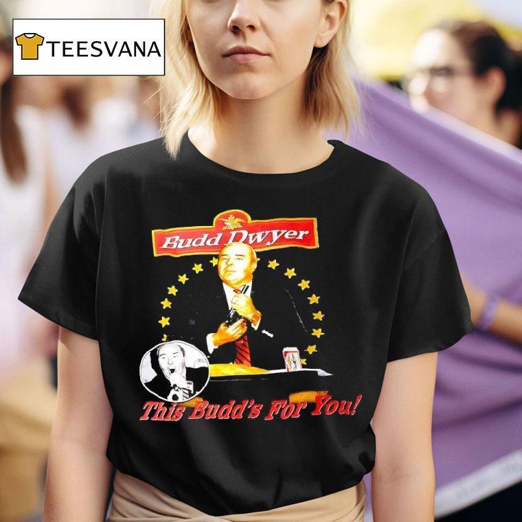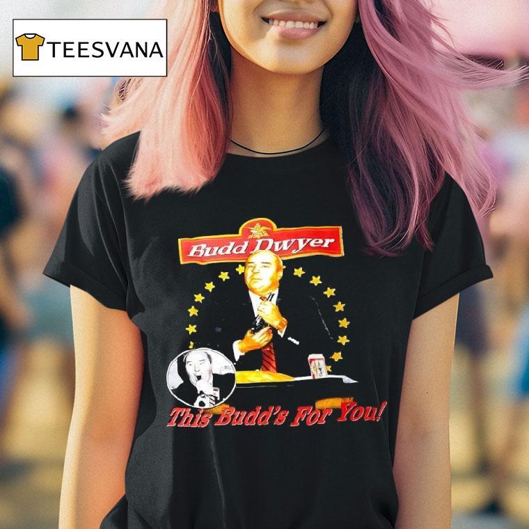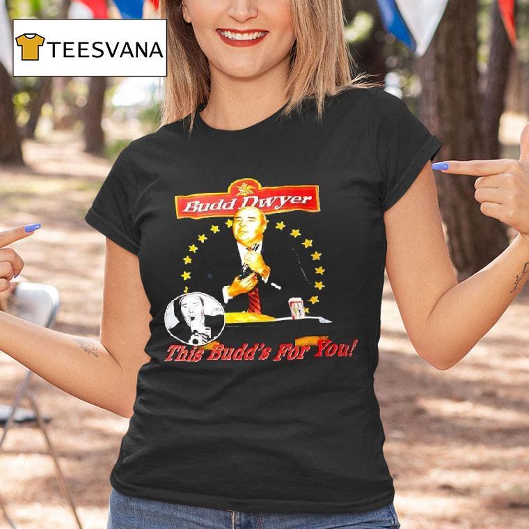 Effortless charm, all occasions with Budd Dwyer This Budd’s For You Shirt, introducing the Budd Dwyer This Budd’s For You shirt, a tribute to the late American politician whose legacy lives on through his tragic story. Wear this shirt as a reminder of the impact he made and as a symbol of hope for those facing difficult decisions.