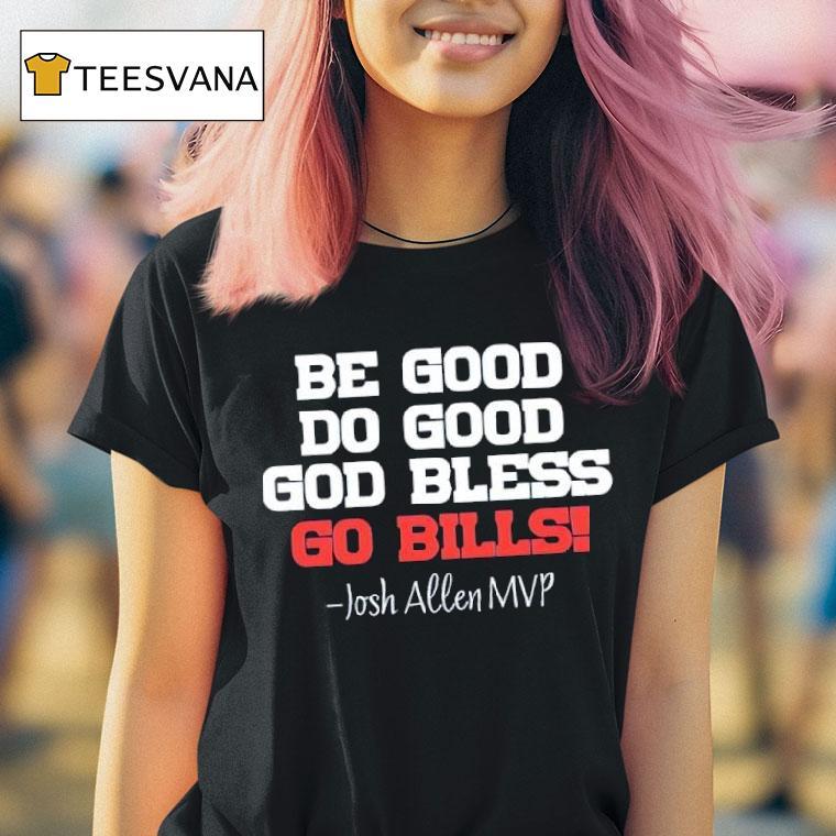 Chic minimalism, always with Buffalo Bills Josh Allen Mvp Be Good Do Good Go Bills Shirt, the Buffalo Bills have been dominating the NFL this season, led by their star quarterback, Josh Allen. Fans are showing their support with the popular “MVP Be Good Do Good Go Bills” shirt, as they cheer on their team and their potential MVP candidate.