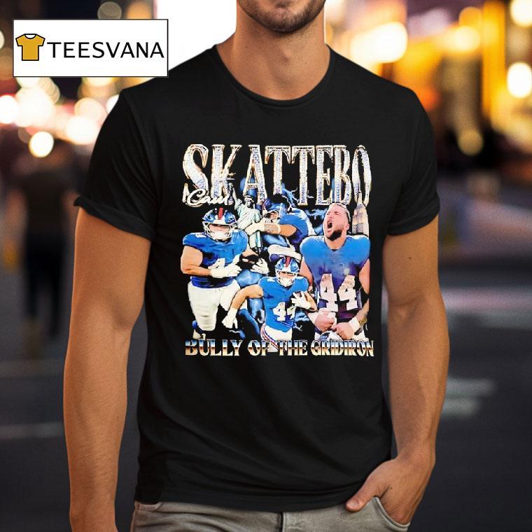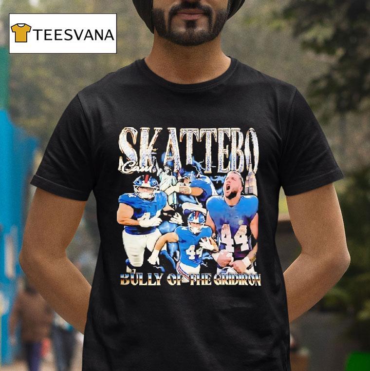 Your fashion canvas with Cam Skattebo New York Giants Football Bully Of The Gridiron Shirt, get ready to dominate the field with the Cam Skattebo New York Giants Football Bully Of The Gridiron Shirt. Show off your love for your team and their fierce reputation with this bold and stylish shirt. Perfect for any die-hard Giants fan or football enthusiast.