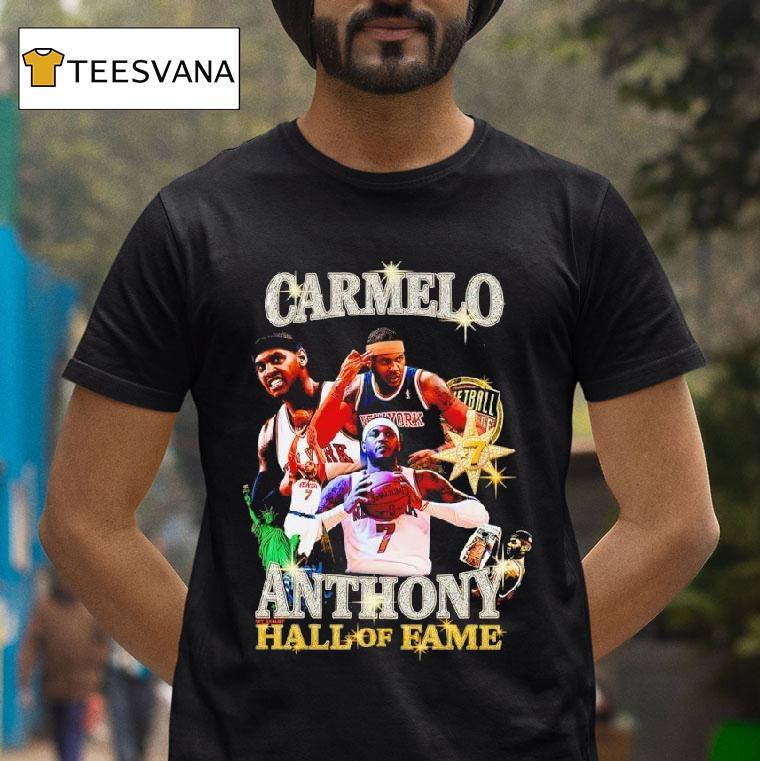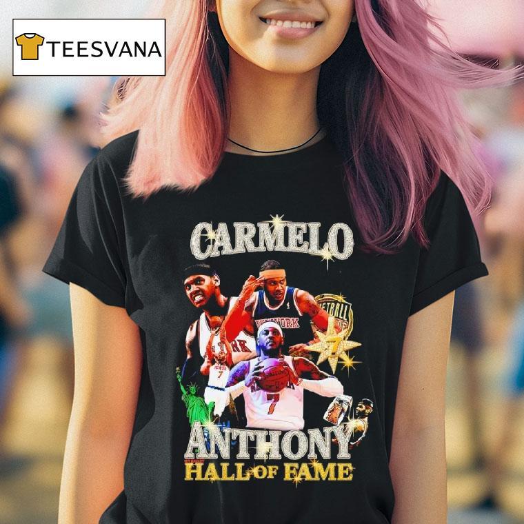 Effortless charm, everyday wear with Carmelo Anthony Hall Of Fame New York Knicks Basketball Graphic Shirt, celebrate the legendary career of Carmelo Anthony with the latest addition to your wardrobe – the Carmelo Anthony Hall of Fame New York Knicks Basketball Graphic Shirt. Show your love for the iconic player and his time with the Knicks in this stylish and unique piece.