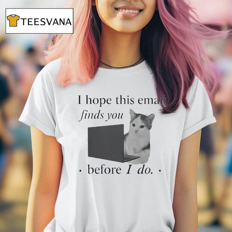 Versatile, stylish simplicity with Cat Using Laptop I Hope This Email Finds You Before I Do Shirt, “Attention all cat lovers! Have you ever caught your furry feline friend using your laptop? Well, I Hope This Email Finds You Before I Do, because this new t-shirt design featuring a cat typing away is perfect for any tech-savvy cat owner. Get yours now!”
