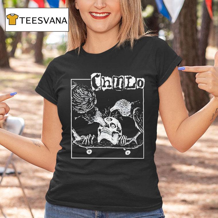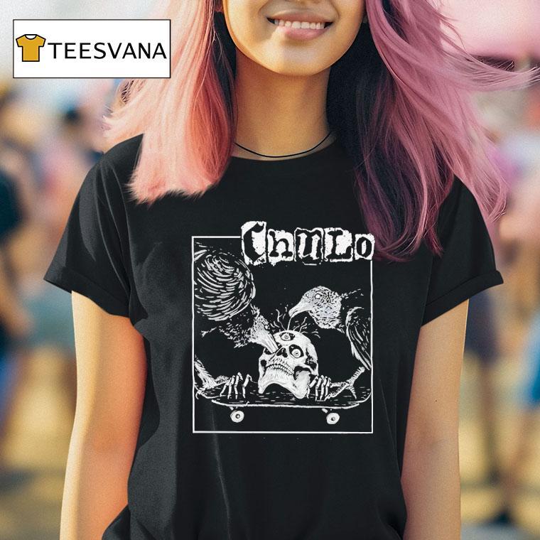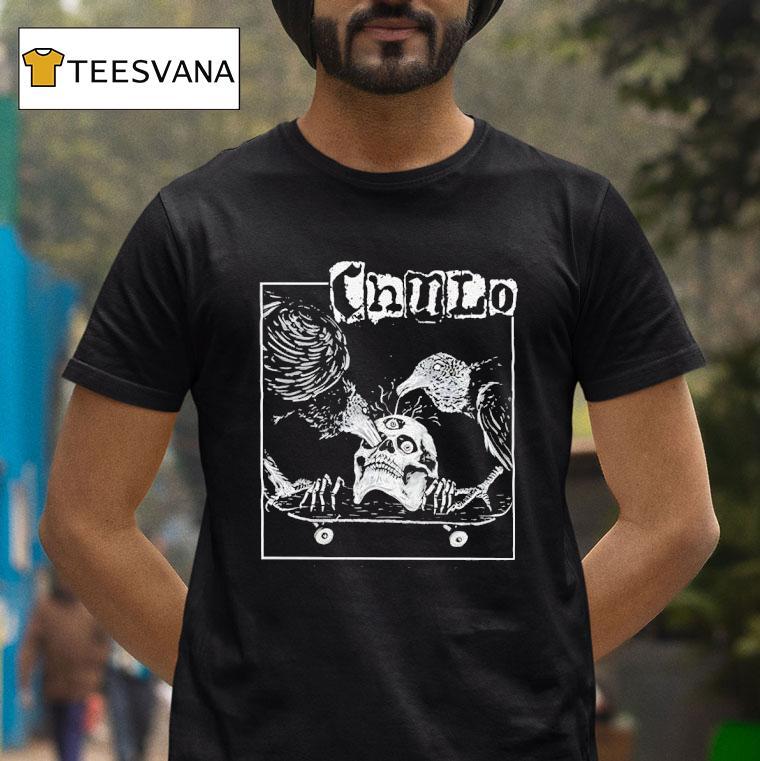 Chic simplicity, everyday elegance with Chaulo Raven Eating Eyes Skull Skateboard Shirt, as the sun sets on the dark streets of Chaulo, the raven perches atop a skull adorned skateboard, its sharp beak tearing into a pair of vibrant eyes printed on a vibrant shirt. A symbol of urban rebellion and edgy fashion, the Chaulo Raven takes flight on the streets.