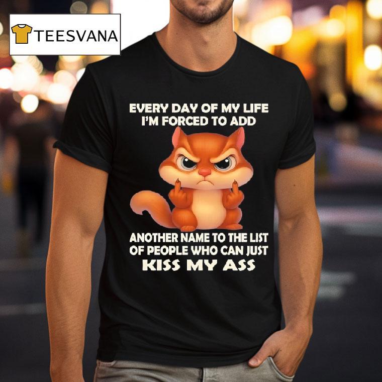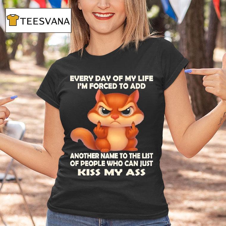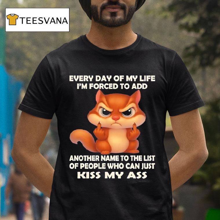 Effortless fashion, endless comfort with Chipmunk Every Day Of My Life I’m Forced To Add Another Name To The List Of People Who Can Just Kiss My Ass Shirt, as a chipmunk, I’ve had to deal with plenty of annoying and troublesome beings in my life. Every day, it seems like I have to add another name to my “kiss my ass” list. But hey, at least I have my awesome shirt to express my sentiments.