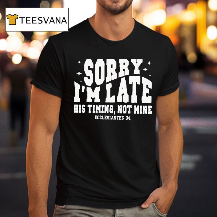 Versatile, stylish simplicity with Christian Sorry I’m Late His Timing Not Mine Shirt, are you constantly apologizing for being late? Let the world know that it’s just God’s timing with the Christian Sorry I’m Late His Timing Not Mine Shirt. A perfect reminder that everything happens for a reason, with a touch of humor and faith.