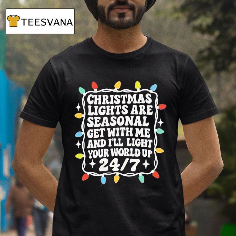 Instant style upgrade with Christmas Lights Are Seasonal Get With Me And I’ll Light Your World Up 24-7 Shirt, as the holiday season approaches, the twinkling of Christmas lights fills the streets with warmth and joy. But why limit the festive spirit to just one season? With the Christmas Lights Are Seasonal Get With Me And I’ll Light Your World Up 24-7 Shirt, you can spread Christmas cheer all year round.
