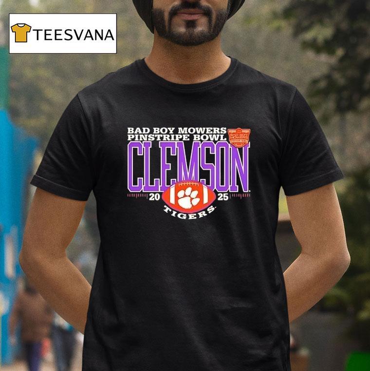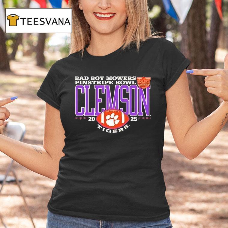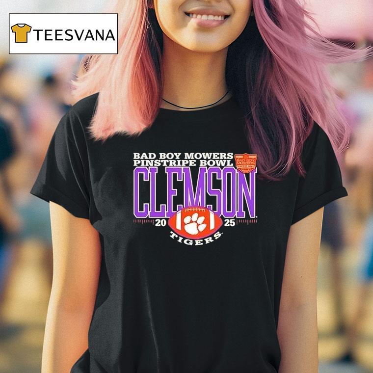 Unmatched comfort, chic look with Clemson Tigers 2025 Bad Boy Mowers Pinstripe Bowl Logo Shirt, the Clemson Tigers are charging towards the future with their eyes set on the 2025 Bad Boy Mowers Pinstripe Bowl. Fans can show their support with the new logo shirt, showcasing the team’s determination and grit as they make their mark on the college football landscape.