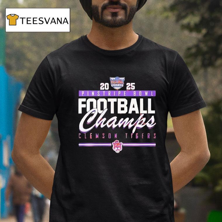 Your style, your signature with Clemson Tigers Pinstripe Bowl Champions 2025 Shirt, “The Clemson Tigers have once again proven their dominance on the football field, bringing home the 2025 Pinstripe Bowl Championship title. Fans can now proudly display their team’s triumph with the limited edition Clemson Tigers Pinstripe Bowl Champions 2025 shirt. Let’s celebrate this victorious moment in style!”