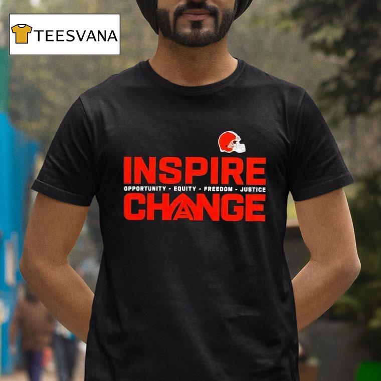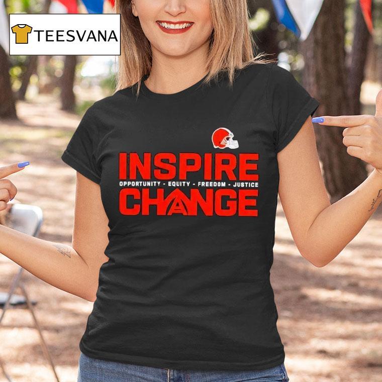 Chic simplicity, maximum comfort with Cleveland Browns Inspire Change Opportunity Equity Freedom Justice Shirt, the Cleveland Browns have long been a symbol of resilience and determination in the NFL. Now, they are taking their commitment to the next level with their “Inspire Change” opportunity, equity, freedom, and justice shirt. Join the team and show your support for positive social change.