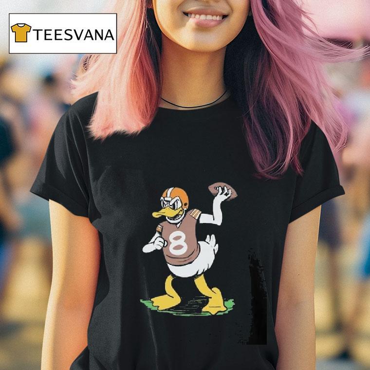 Versatile fashion, timeless appeal with Cleveland Duck Qb Shirt, “Represent your love for Cleveland football with our exclusive NFL licensed Cleveland Duck QB shirt. Made with soft, comfortable fabric and featuring a bold design, this shirt is perfect for any die-hard fan. Show your team spirit in style and get yours today!”
