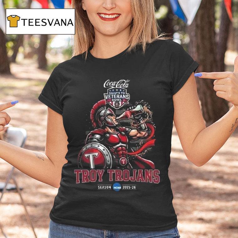 Essential wardrobe staple with Coca Cola X College Football Bowl Ncaa Season 2025-26 Salute To Veterans Bowl Troy Trojans On December 16 2025 At Cramton Bowl Montgomery Shirt, get ready for an epic showdown as the Coca Cola X College Football Bowl kicks off the NCAA season 2025-26 with the Salute to Veterans Bowl featuring the Troy Trojans on December 16, 2025 at the Cramton Bowl in Montgomery. Don’t miss out on this exciting match-up for a chance to score the commemorative shirt.