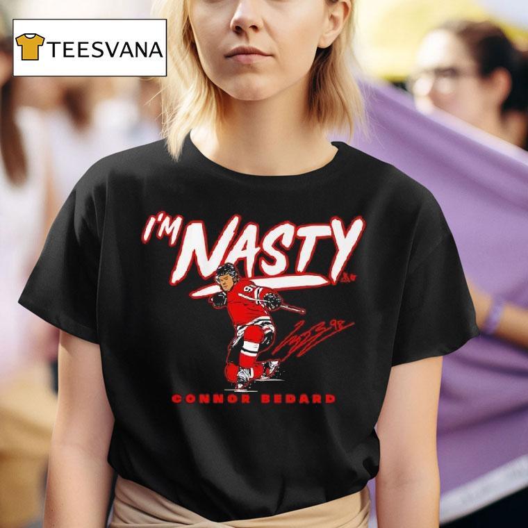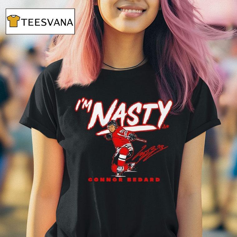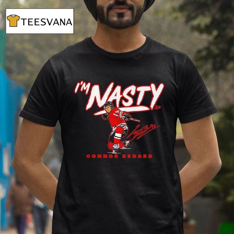 Classic charm, modern edge with Connor Bedard I’m Nasty Signature Hockey League Players Shirt, introducing the newest addition to the Nasty Signature Hockey League Players collection: the Connor Bedard I’m Nasty signature shirt. With its sleek design and high-quality material, this shirt showcases the young phenom’s talent and passion for the game. Get yours now and show off your support for the rising star.