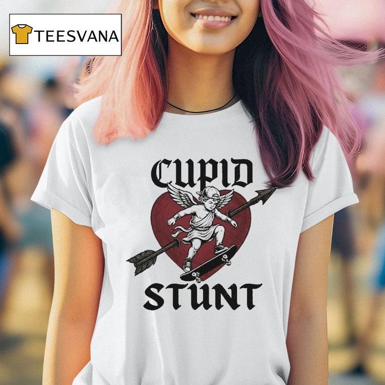 Chic and comfortable with Cupid Stunt Heart Arrow Skateboard Shirt, fall in love at first sight with our limited edition Cupid Stunt Heart Arrow Skateboard Shirt. Designed for the adventurous and daring, this shirt features a bold graphic of Cupid on a skateboard shooting his love arrow. Perfect for those who believe in love and taking risks.