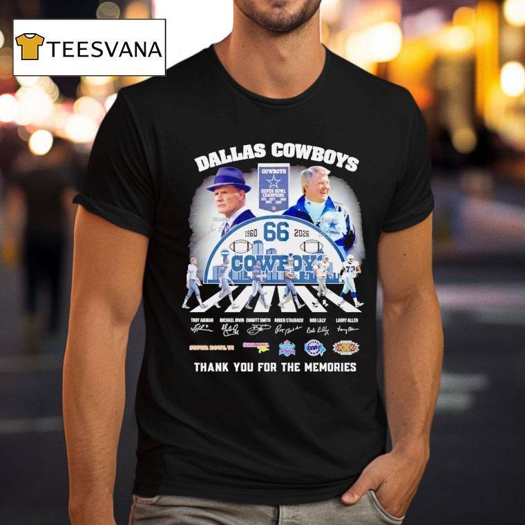 Casual elegance, always with Dallas Cowboys 66 Years Signature Thank You For The Memories Shirt, the Dallas Cowboys have been a staple in the NFL for 66 years, leaving a lasting legacy on and off the field. As a show of appreciation, the team has released a signature “Thank You For The Memories” shirt that pays homage to their incredible journey.