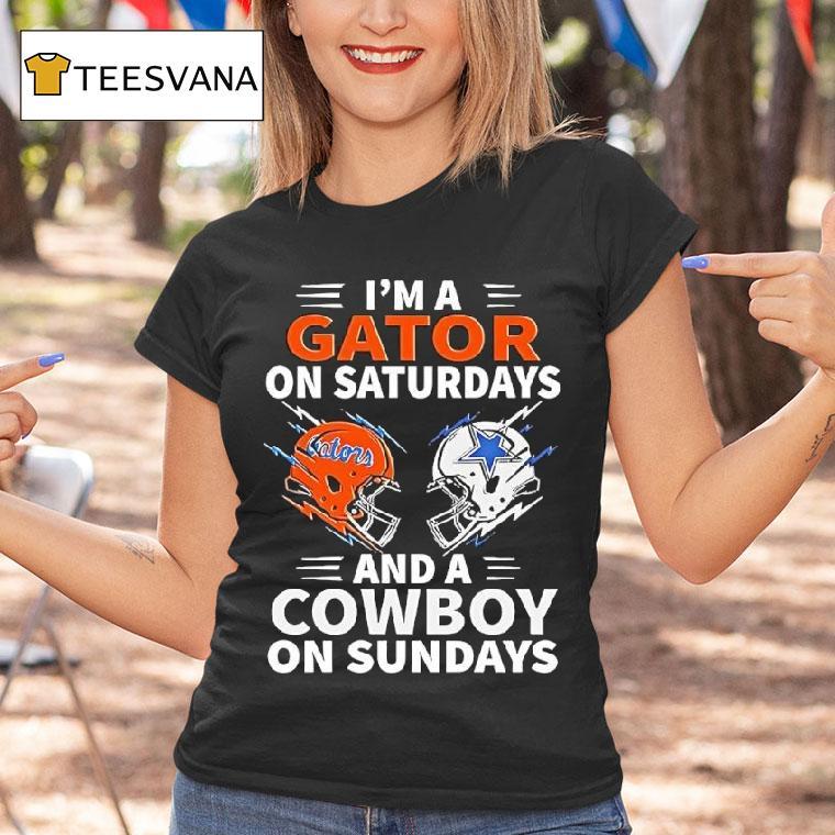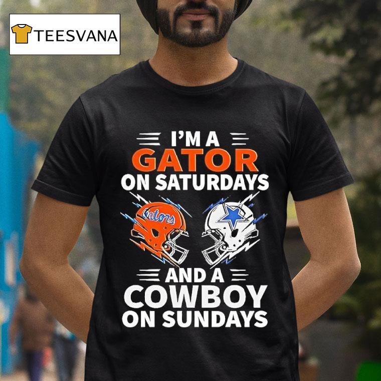 Trendy, timeless tee with Dallas Cowboys Vs Florida Gators I’m A Gator On Saturdays And A Cowboy On Sundays Shirt, get ready for the ultimate showdown between two powerhouse teams – the Dallas Cowboys and the Florida Gators. But for fans like me, who proudly show their support for both teams, the real question is: who will come out on top while rocking my “I’m a Gator on Saturdays and a Cowboy on Sundays” shirt?