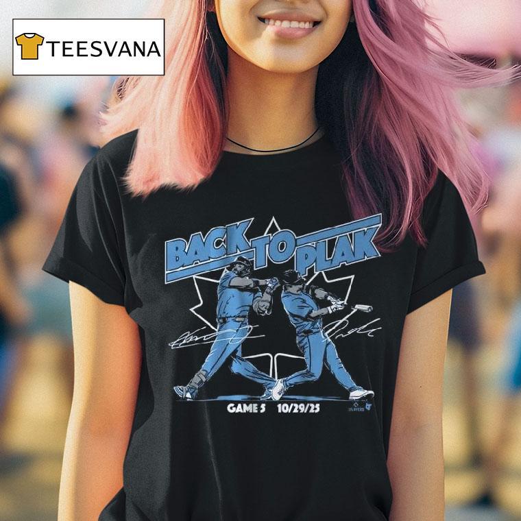 Wardrobe staple, endless style with Davis Schneider Vladimir Guerrero Jr Back-to-plak Shirt, “Get ready to hit a home run in style with the new Davis Schneider Vladimir Guerrero Jr back-to-plak shirt. This limited edition design combines the talent of two rising baseball stars into one stylish and comfortable piece. Don’t miss out on this must-have for any fan.”