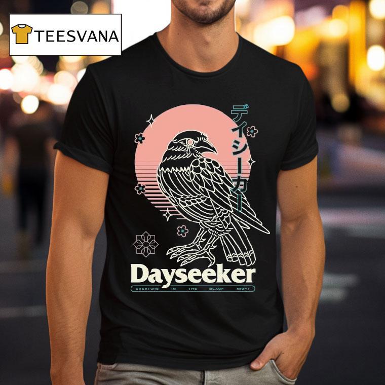 Wearable comfort, endless style with Dayseeker Creature In The Black Night Raven Shirt, introducing the Dayseeker Creature In The Black Night Raven Shirt, a striking addition to any wardrobe. Featuring a striking raven design against a black background, this shirt combines style with edgy darkness. Perfect for fans of the mysterious and alluring creature of the night.