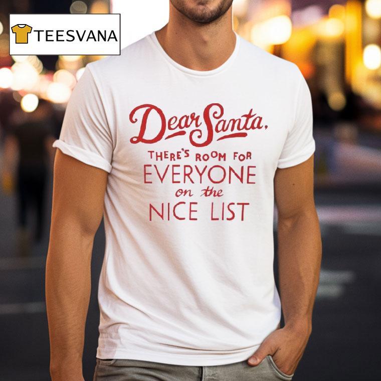 Classic charm, modern comfort with Dear Santa There’s Room For Everyone On The Nice List Shirt, dear Santa, the holiday season is upon us and everyone is eagerly awaiting your arrival. While we know your naughty and nice list can get pretty long, we believe that there’s room for everyone on the nice list, especially those wearing the Dear Santa There’s Room For Everyone On The Nice List shirt.