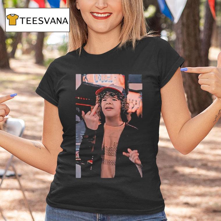 Versatile style, always chic with Dustin Henderson Stranger Things Middle Finger Shirt, “Join the rebellion against the Upside Down with Dustin Henderson’s iconic Stranger Things Middle Finger shirt. Show your defiance and love for this cult classic series with this must-have piece of merch, perfect for any fan of the lovable misfit from Hawkins, Indiana.”