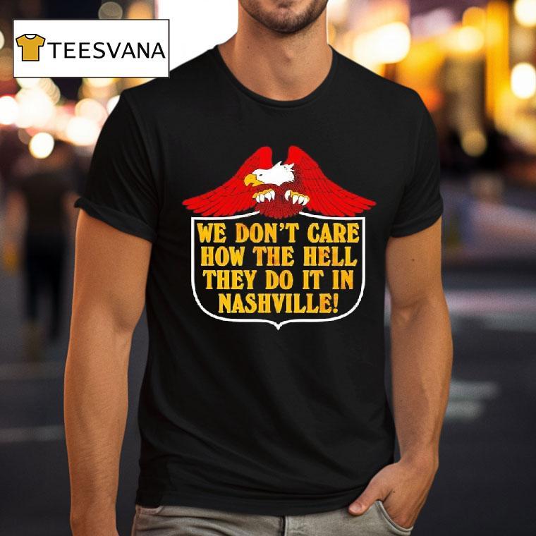 Wear it well, wear it often with Eagle We Don’t Care How The Hell They Do It In Nashville Shirt, are you a proud Nashville resident with a love for eagles? Look no further! Our “Eagle We Don’t Care How The Hell They Do It In Nashville” shirt is the perfect way to show off your love for your city and its majestic symbol. Order yours today!