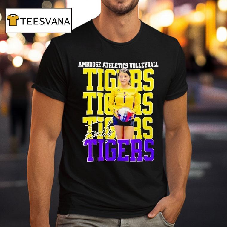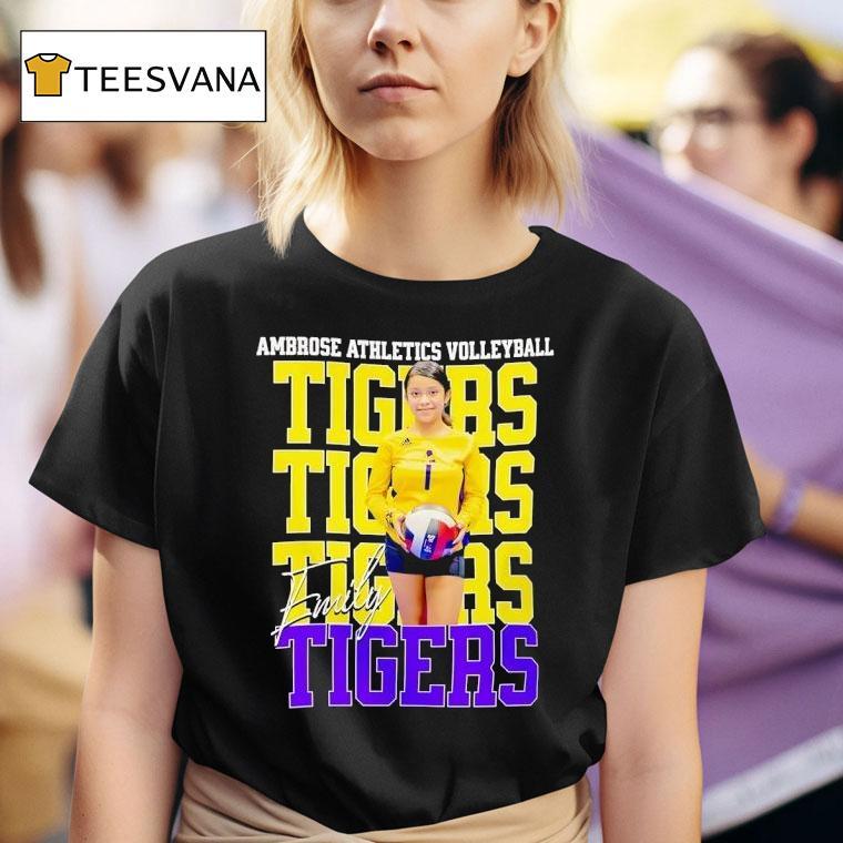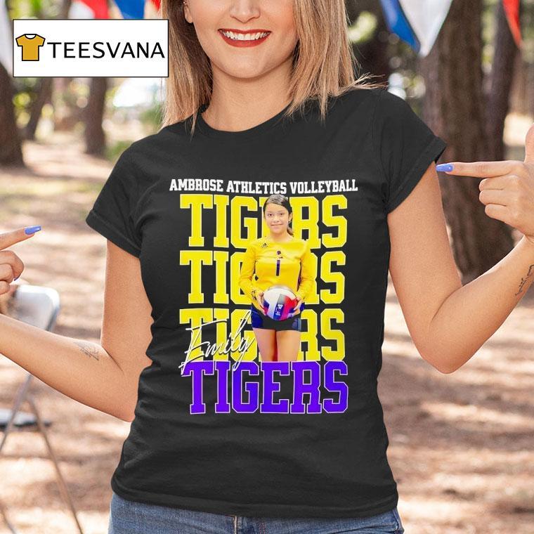 Chic simplicity, everyday charm with Emily Ambrose Athletics Tigers Volleyball Shirt, “Welcome to the world of Emily Ambrose Athletics! Our brand-new line of Tigers Volleyball shirts is designed for both comfort and style on and off the court. With high-quality materials and a sleek design, you’ll be sure to stand out and show your team spirit. Let’s get ready to cheer on our Tigers!”