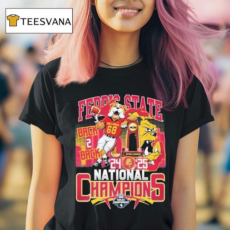 Your style, your tee with Ferris State Bulldogs Back 2 Back National Champions ’24 2025 Mascot Trophy Shirt, the Ferris State Bulldogs have done it again, claiming back-to-back national championships in ’24 and ’25. Show your pride for this dominant team with the official Mascot Trophy Shirt. Join in on the celebration of this historic achievement and support the Bulldogs on their journey to continued success.