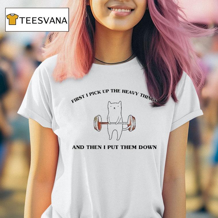 The perfect blank canvas with First I Pick Up The Heavy Things And Then I Put Them Down Shirt, do you have a love for lifting heavy things? Look no further, the First I Pick Up The Heavy Things And Then I Put Them Down shirt is here! Show off your passion for weightlifting with this stylish and comfortable shirt.