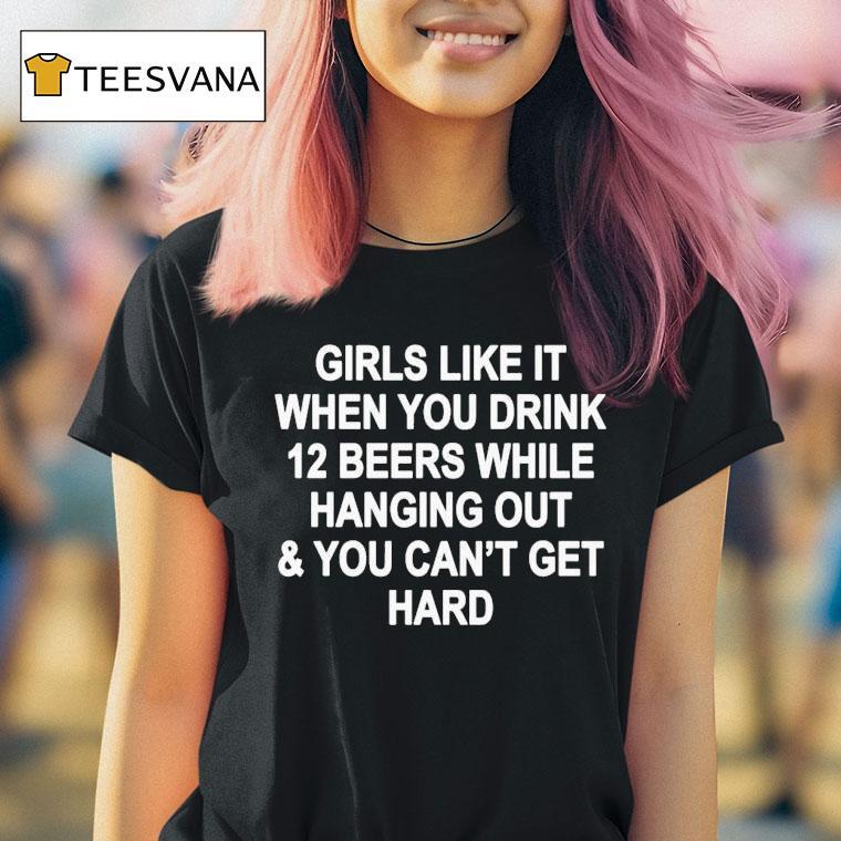 Relaxed elegance, everyday with Girls Like It When You Drink 12 Beers While Hanging Out And You Can’t Get Hard Shirt, attention all beer-loving gentlemen! Are you looking for the perfect shirt to impress the ladies? Look no further, because girls love it when you drink 12 beers and still can’t get enough of you in our “Can’t Get Hard” shirt. Get ready for some serious attention!