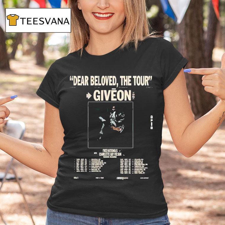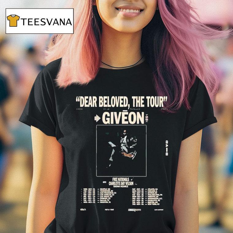 Casual cool, anytime chic with Giveon Dear Beloved The Tour 2025 Dates Shirt, attention all Giveon fans! Are you ready for the Dear Beloved Tour in 2025? Get ready to show your love and support by snagging the limited edition tour dates shirt. With Giveon’s soulful voice and heartfelt lyrics, this is a tour you don’t want to miss. Get your shirt now!