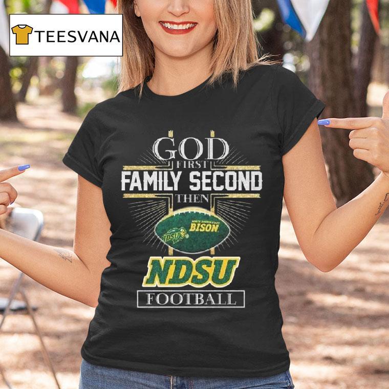 Style that speaks volumes with God First Family Second Then North Dakota State Bison Football Logo 2025 Shirt, introducing the must-have shirt for all die-hard fans of the North Dakota State Bison Football team! With a design featuring the iconic logo and the year 2025, this shirt is perfect for showing off your team spirit. Remember, God first, family second, and NDSU football always!