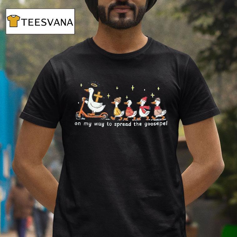 Everyday luxury, casual charm with Goose Christian Geese On My Way To Spread The Goosepel Shirt, embark on a journey with me as we fly towards spreading the good news in our Goose Christian Geese on My Way to Spread the Goosepel shirt. Join our flock as we share the message of love, hope, and faith with others. Let’s make a difference, one step (or flap) at a time.