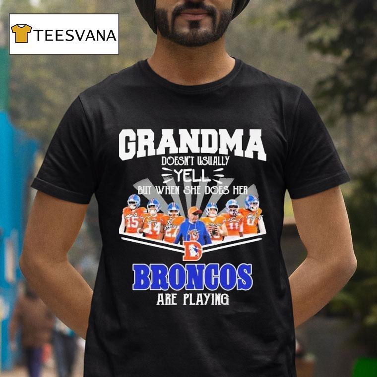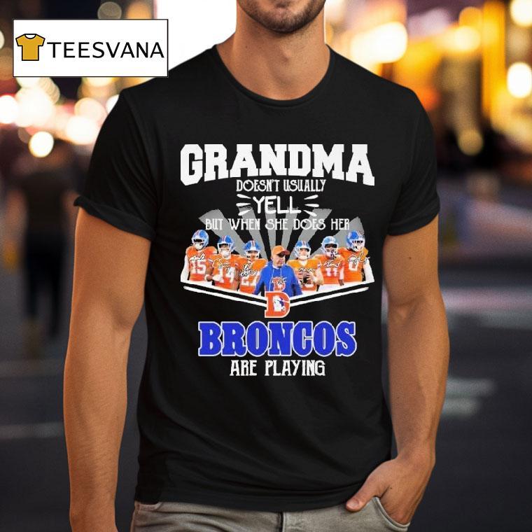 Chic and comfortable with Grandma Doesn’t Usually Yell But When She Does Her Denver Broncos Are Playing Signatures Shirt, grandma may be a calm and gentle soul, but when her beloved Denver Broncos are playing, things can get a little loud. And you know it’s game day when she puts on her signature orange shirt with the team’s logo. Let’s take a peek into grandma’s game day rituals.