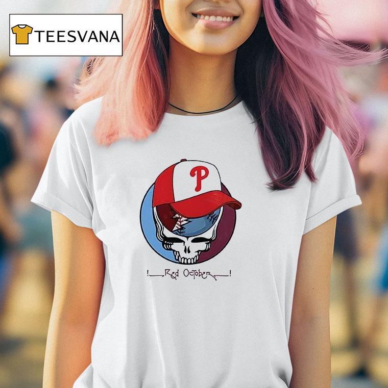 Comfortable confidence with Grateful Dead X Philadelphia Phillies Red October Mascot Parody Shirt, “Get ready to rock the ballgame with the ultimate fusion of music and sports! The Grateful Dead x Philadelphia Phillies Red October Mascot Parody Shirt is a must-have for any die-hard fan. Paying homage to both iconic brands, this shirt is the perfect addition to your game day attire.”