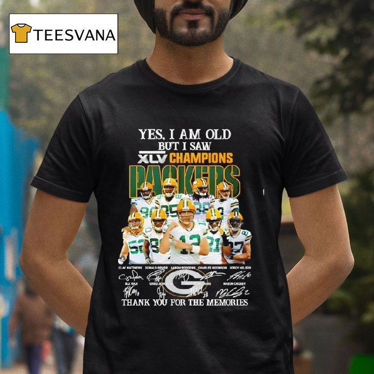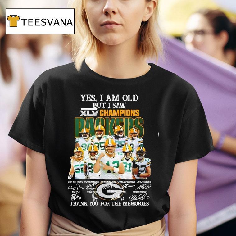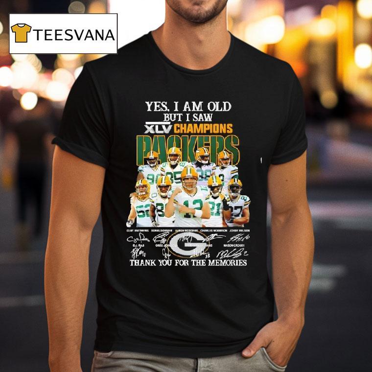 Comfort meets fashion with Green Bay Packers Yes I Am Old But I Saw Super Bowl Xlv Signatures Thank You For The Memories Shirt, as a die-hard fan of the Green Bay Packers, I may be considered old, but I proudly wear my Super Bowl XLV signatures shirt as a symbol of cherished memories. From the glory days to the present, this team never fails to inspire and unite us fans. Thank you, Packers!