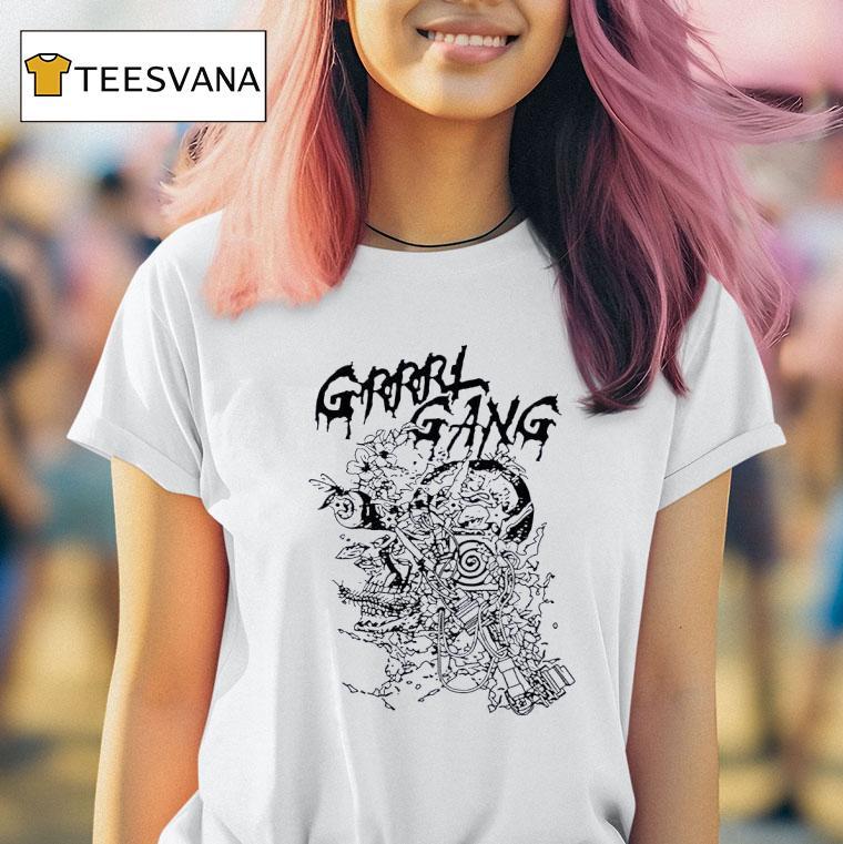 Wardrobe must-have with Grrrl Gang X Behelit Press Electric Bloom Shirt, welcome to the fashion world revolutionized by Grrrl Gang, a powerful collective advocating for self-expression and empowerment. Join forces with Behelit Press and their Electric Bloom Shirt, a bold statement piece that embodies the perfect fusion of feminism and edgy street style.