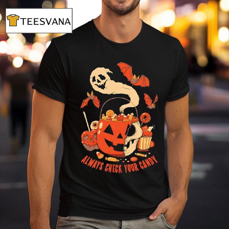 Classic tee, modern twist with Halloween Always Check Your Candy Shirt, get ready to trick or treat in style with our Halloween Always Check Your Candy Shirt! Made with the softest fabric and featuring a playful design, this shirt is the perfect addition to your spooky wardrobe. Stay safe and stylish this Halloween with our must-have shirt.